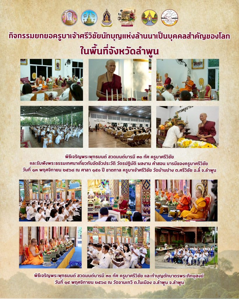 ๒๗ กรกฎาคม ๒๕๖๘ วิทยาลัยสงฆ์ลำพูน ขอขอบคุณทุกภาคส่วน ที่ร่วมเป็นส่วนหนึ่งใน พิธีเปิดศูนย์ครูบาศรีวิชัยศึกษา อีกก้าวแห่งการสืบสานคุณค่าทางศาสนาและปณิธานของนักบุญแห่งล้านนา จุดเริ่มต้นของแหล่งเรียนรู้...